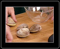 Before shuckingor openingyour clams, wash them thoroughly. You will need a clean bowl and a sharp paring knife. |
