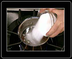 To make the caramel base: Put the sugar and water in a saucepan, and stir to moisten sugar. |