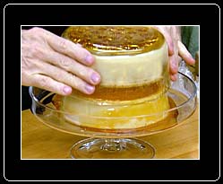 Place a platter, top side down, on top of the custard, invert the custard onto the platter, and remove the mold. |