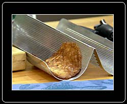 Place them in a baguette mold or over a rolling pin to give them a curved shape. Be gentle with the cookies and work quickly, as they will harden fast. Store in an airtight container so they don't soften. |