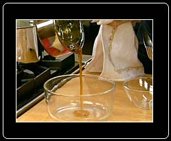 Pour the caramel into the bottom of a 6 c. soufflé mold, and set aside. |