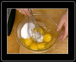 Meanwhile, beat the eggs in a bowl, then add rum, cream, and coffee extract. |
