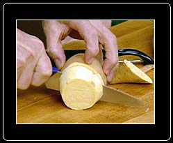 To make the sweet potatoes: Wash potatoes and cut into 1-1/2" slices. |