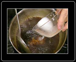 Add the stock, honey, salt, pepper, and potato starch. Bring to a boil. Set aside. |