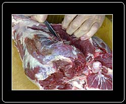 Cut around the knee joint, so the second bone stays attached, and remove both bones together. |