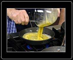 Melt the butter in a 6-8" nonstick skillet. When foaming, add the eggs. |