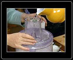Add the water through the feed tube of the food processor, and process for another 5-10 seconds, just until the dough starts gathering together. |