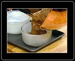 Butter and sugar a 6-8 c. soufflé mold and fill with soufflé. Place the mold on a cookie sheet, and bake for 20-25 minutes, until set but still wet inside. |