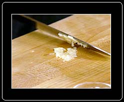 Peel, crush, and chop garlic. |