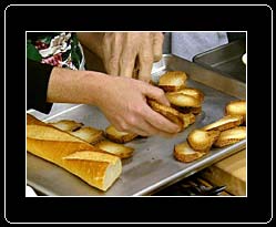 Preheat oven to 400°. Arrange bread slices in one layer on a cookie sheet and bake for 8-10 minutes. |