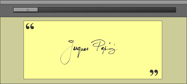 If you see this message you will need Flash 5 or above to view the Jacques Pépin Interactive Timeline. It only takes a few minutes.
